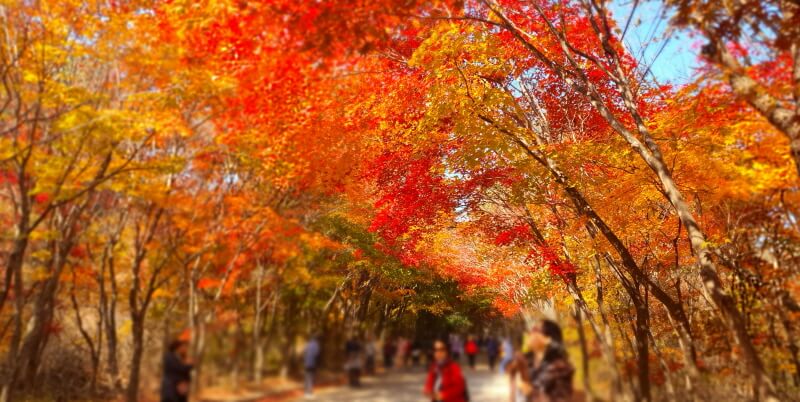 마치 물감을 흩뿌려 놓은 듯, 화려한 빛깔로 수 놓인 단풍나무 숲에 발을 들여본다.