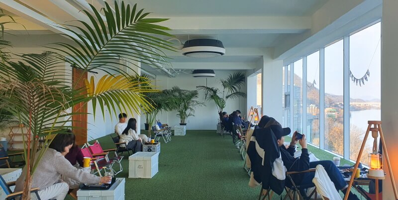 창가 좌석 뒤에도, 계단식으로 북한강을 조망할 수 있는 넓은 좌석이 마련되어 있다.